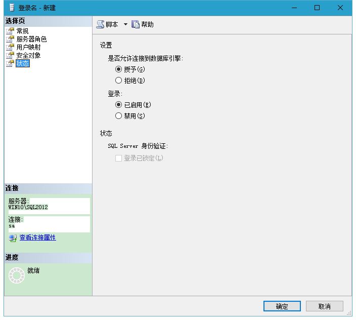 對于用戶映射和狀態的所有其它選項的SQL Server登錄和Windows登錄是一樣的。