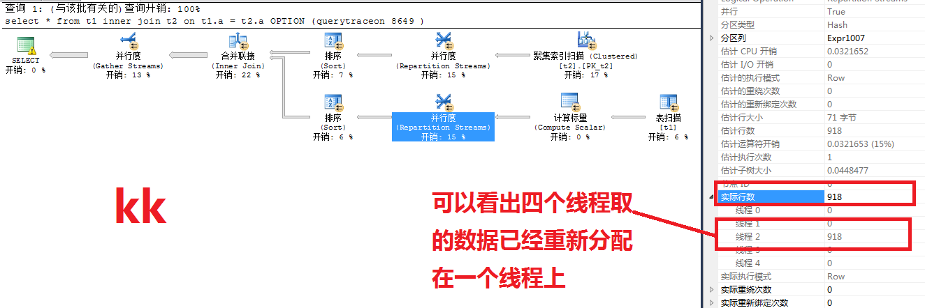 個人猜測所謂并行其實就是每個物理操作符的多線程同時操作,但單單這一個例子是不能說明問題的。SQL 也不會傻到并行只是操作符級別的吧? 這個沒有找到明確的答案,繼續研究爭取有結論!!!