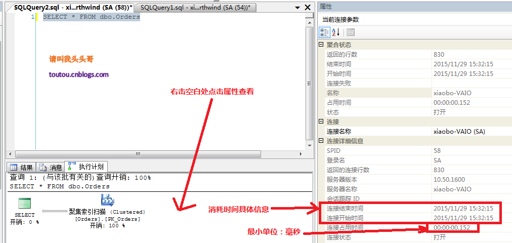 可視化查看運行時間T-sql語句查詢時間占用內存T-sql語句查詢IO