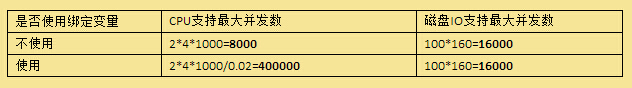 從以上計算可以看出,不使用綁定變量的系統當并發達到8000時會在CPU上產生瓶頸,當使用綁定變量的系統當并行達到16000時會在磁盤IO上產生瓶頸。所以如果你的系統CPU有瓶頸時請先檢查是否存在大量的硬解析操作。