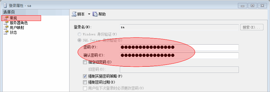 3、回到對象資源管理器,在節點“安全性 → 登錄名”下右擊登錄名“sa”,從快捷菜單中執行“屬性”: