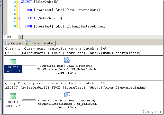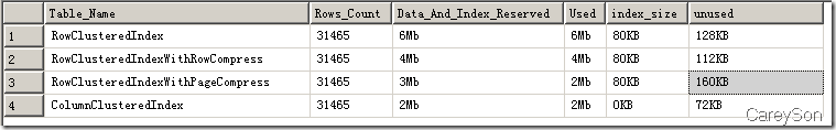 圖7的示例數據很少,但依然可以看到,列存儲比即使沒有非聚集索引的行存儲,占用空間也幾乎少了2/3,提升不可謂不巨大。