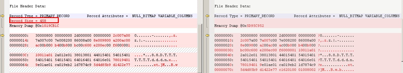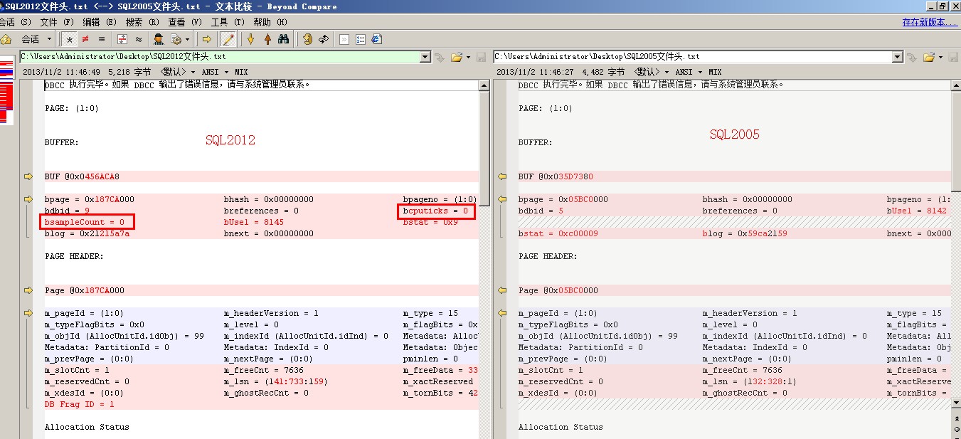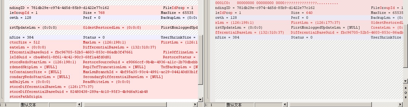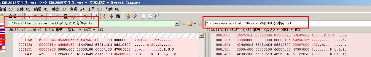 然后我做了一個(gè)實(shí)驗(yàn),檢查一下附加到SQL2012的數(shù)據(jù)庫和附加到SQL2005的數(shù)據(jù)庫,兩個(gè)數(shù)據(jù)庫的文件頭有什么不同