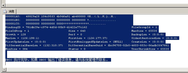 DBCC 執(zhí)行完畢。如果 DBCC 輸出了錯(cuò)誤信息,請(qǐng)與系統(tǒng)管理員聯(lián)系。