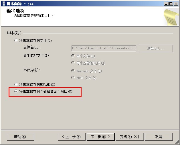 保存到新建查詢窗口