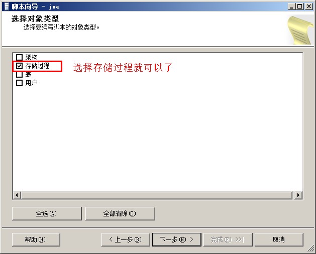 首先,先在公司的服務器數據庫上生成存儲過程腳本,數據庫是1.1版本的,下面的圖片里沒有說明的,都是默認設置,下一步即可
