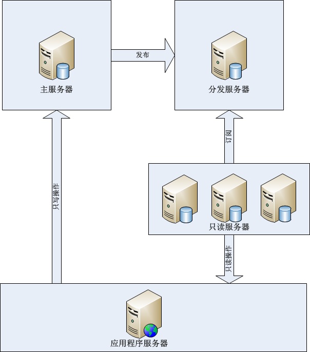 (4)讀具有高性能高可靠性和可伸縮:只讀服務器,因為沒有寫操作,會大大減輕磁盤IO等性能問題,大大提高效率;只讀服務器可以采用負載均衡,主數據庫發布到多個只讀服務器上實現讀操作的可伸縮性。