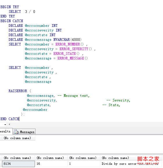 當(dāng)然我這里是故意用RAISERROR再次拋出錯(cuò)誤信息,運(yùn)行結(jié)果如下: