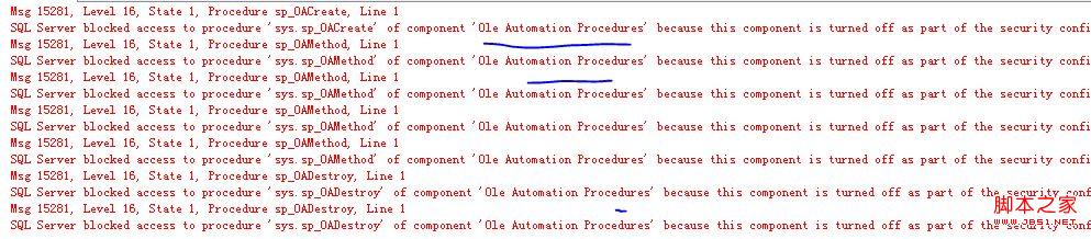 如果遇到以下錯(cuò)誤則說明Ole Automation Procedures沒有啟用