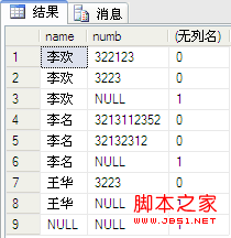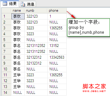 select [name],numb,sum(fenshu) from dbo.PeopleInfo group by [name],numb with cube --3,用with cube。這三種情況的比較