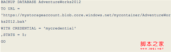 下面的示例演示了如何備份 AdventureWorks2012 數據庫到 Windows Azure Blob 存儲服務上。