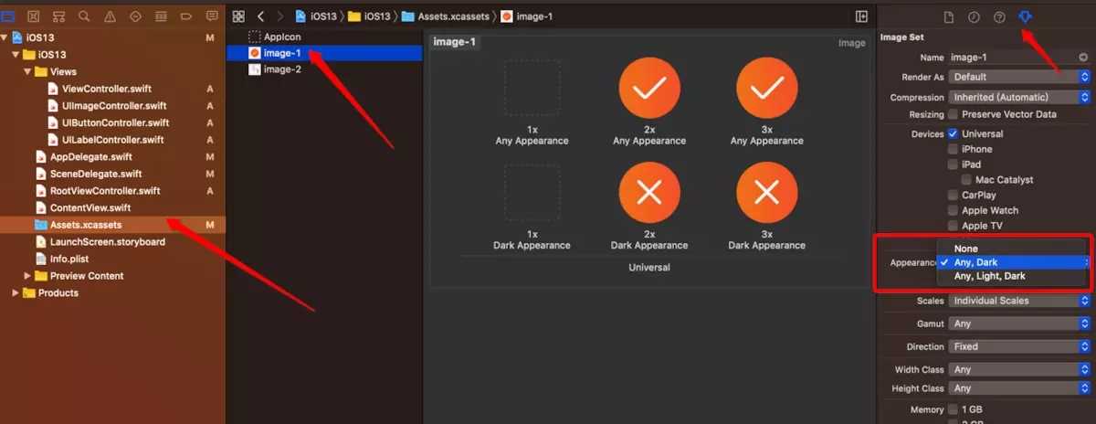 在設置Appearances時, 我們選擇Any, Dark就可以了(只需要適配深色模式和非深色模式)