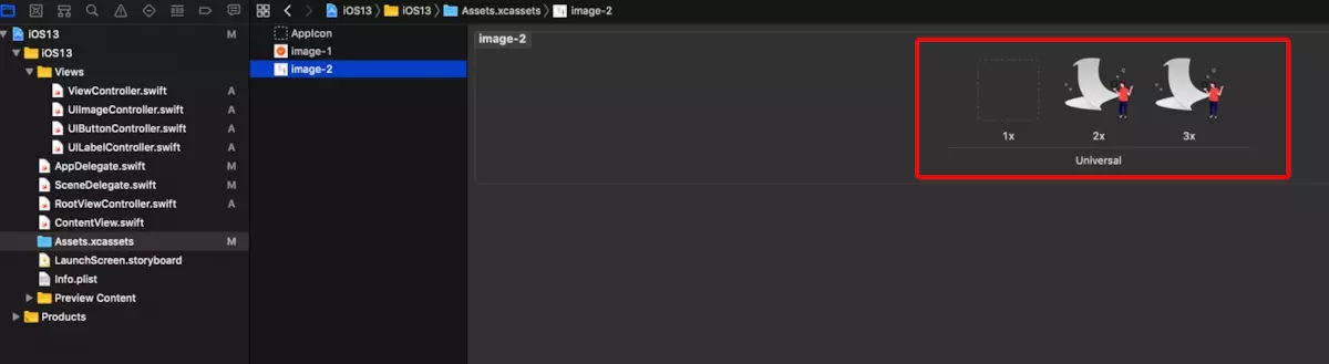 在iOS中, 圖片基本都是放在Assets.xcassets里面, 所以圖片的適配, 我們就相對麻煩一些了