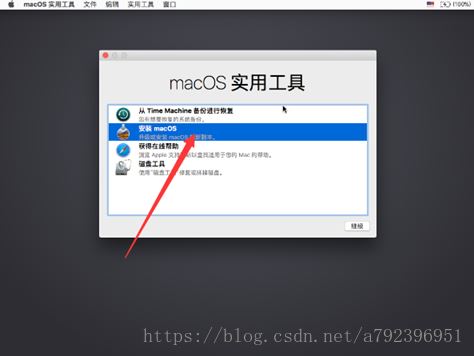 下一步出現macOS實用工具,選擇磁盤工具