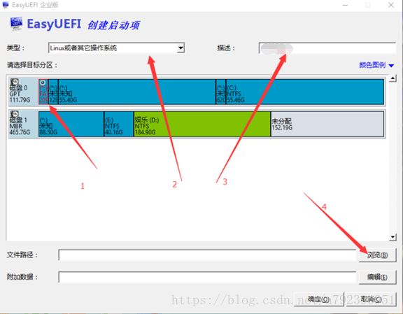 類型選著Linux,描述自定義就可以,選擇你BIOS里啟動項的那個EFI盤