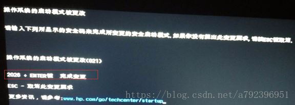 4. 電腦重啟后會出現如下圖所示界面,他要求你輸入四個數字并按下“Enter鍵”完成變更,這四個數字是隨機的,通過鍵盤輸入數字和Enter。