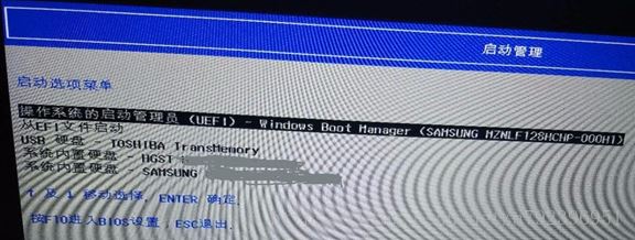 5. 輸入結束后會出現下圖所示“啟動管理”界面,選擇“USB 硬盤”選項后電腦就從你的U盤開始啟動了。