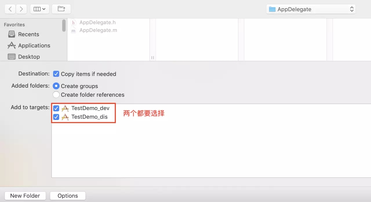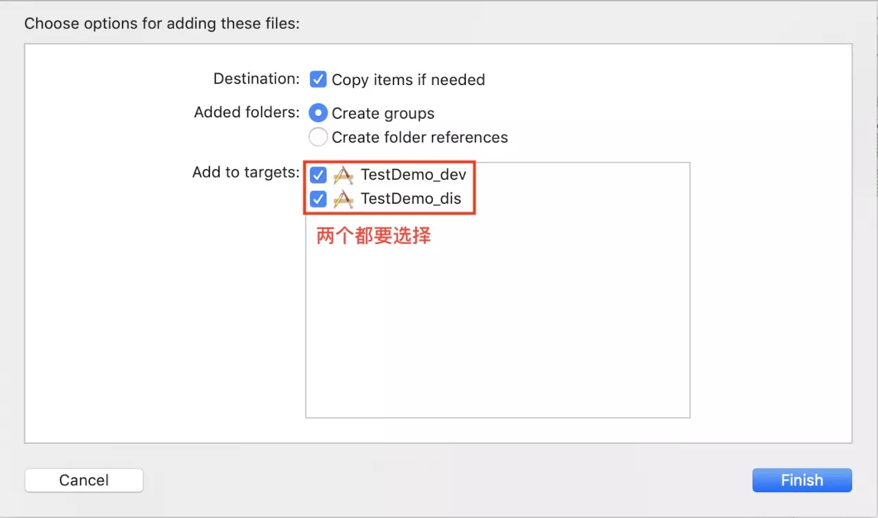 六: 添加新的文件時, 需要勾選多個Target, 以保證代碼一致
