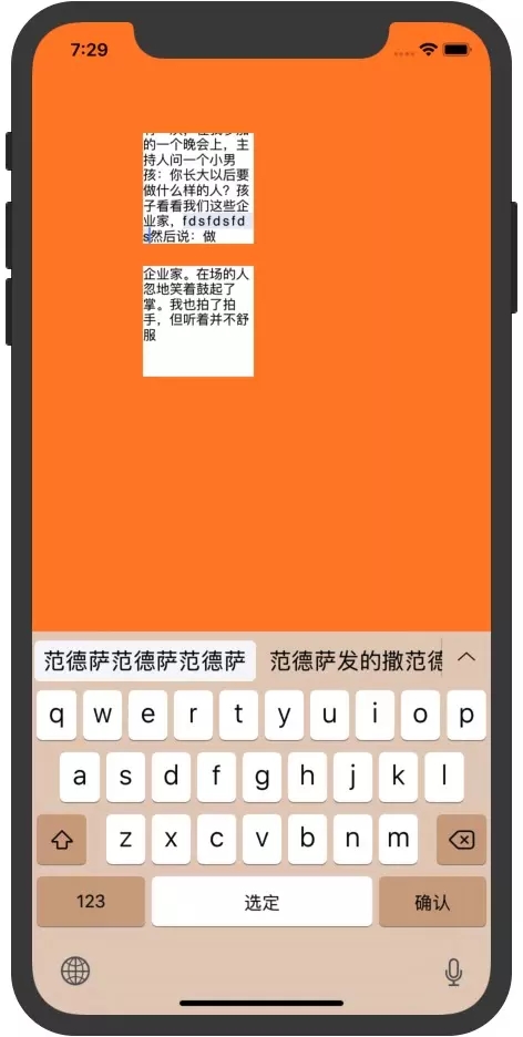 CGFloat realHeight = [textView sizeThatFits:CGSizeMake(CGRectGetWidth(textView.bounds), MAXFLOAT)].height; // 判斷是否需要分頁 if (realHeight <= textViewSize.height) { return; } // 進行分頁處理 ...... ......3.2 存在著編寫拼音的特殊處理時對于markText文本的處理.