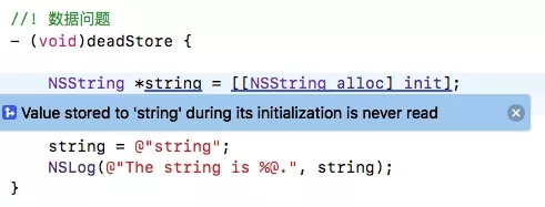 在編碼過程中,一些數據問題可以通過Analyze很好的提示出來。比如下圖: