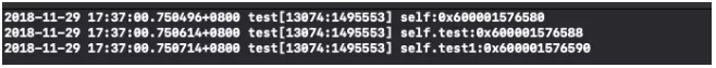 2018-11-29 21:03:30.490989+0800 test[2129:122769] cls address:0x7ffeebf4fa00 str address:0x7ffeebf4fa08