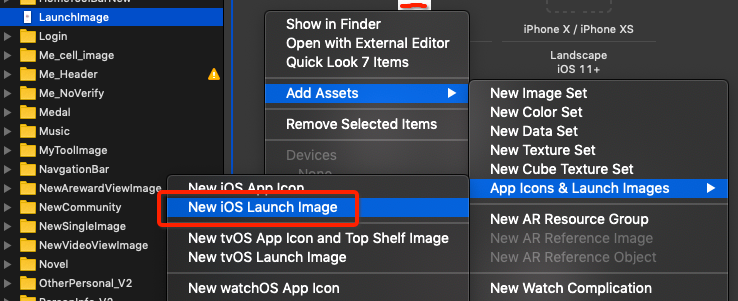 需要注意的是,當你的老項目用Xcode10打開后,打開Images.xcassets文件夾,再到LaunchImage文件夾下時,找不到以上兩個新機型的占位框,最簡單的辦法就是右鍵添加一個新的LaunchImage,然后刪除老的LaunchImage,記得新建的文件夾要改名LaunchImage哦。