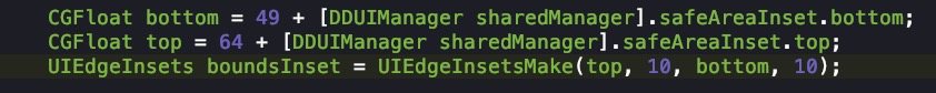 @interface DDUIManager : NSObject@property (nonatomic, assign, readonly) UIEdgeInsets safeAreaInset;/* * 是否是劉海屏 * */@property (nonatomic, assign, readonly) BOOL isHairHead;+ (instancetype)sharedManager;@end
