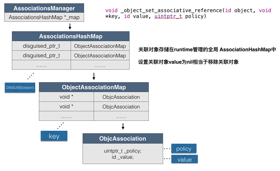 AssociationsManager // 維護(hù)關(guān)聯(lián)關(guān)系的全局管理者 ---> 保存AssociationsHashMap