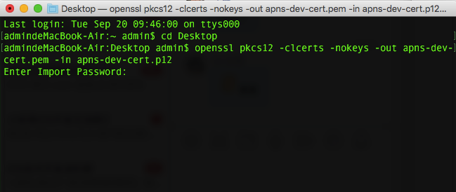 openssl pkcs12 -clcerts -nokeys -out apns-dev-cert.pem -in apns-dev-cert.p12