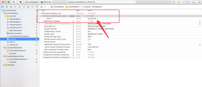 我們所需要的就是這個iconfont.ttf,對于這個ttf文件,我想我們并不陌生吧。新建項目,將這個ttf文件拖入自己的項目里。