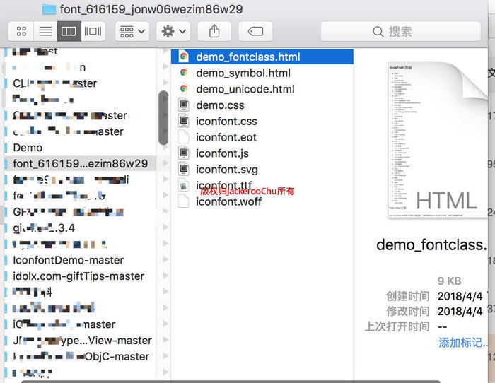 2. 所有需要的unicode編碼都可以在下載的iconfont文件夾中的.html文件打開查看
