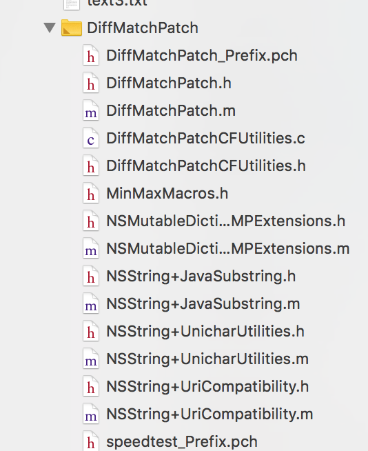 然后導入(#import "DiffMatchPatch.h")就可以開始用了,下面演示用l1.txt和l2.txt文件來展示,可以比較直觀的看出效果