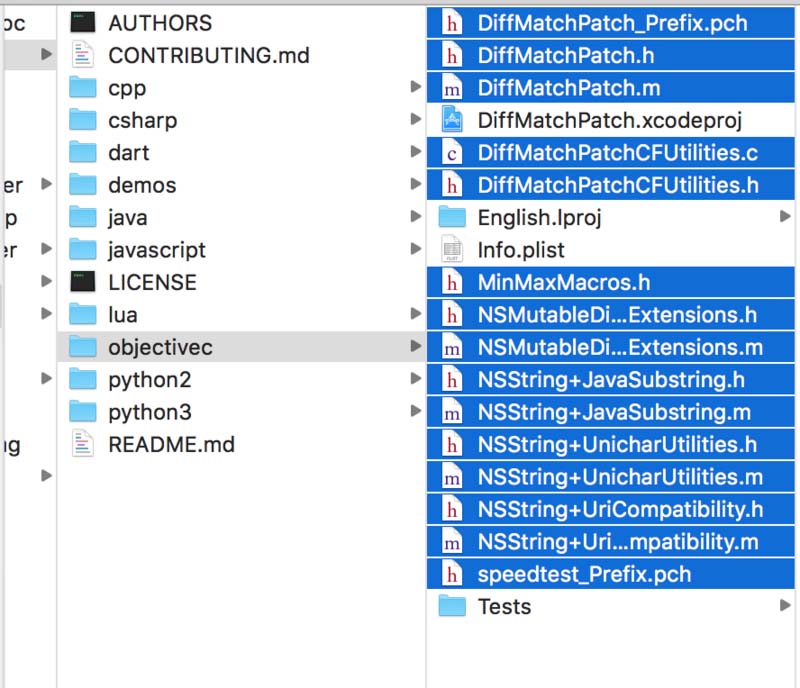 利用google的diff文件(資料查出來,這個比較受歡迎,同時也兼容Objective-C),github地址:https://github.com/google/dif...
