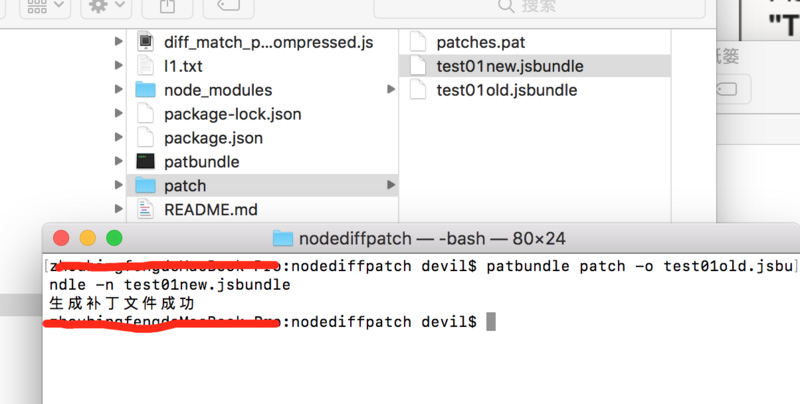 5.終端輸入:patbundle patch -o test01old.jsbundle -n test01new.jsbundle