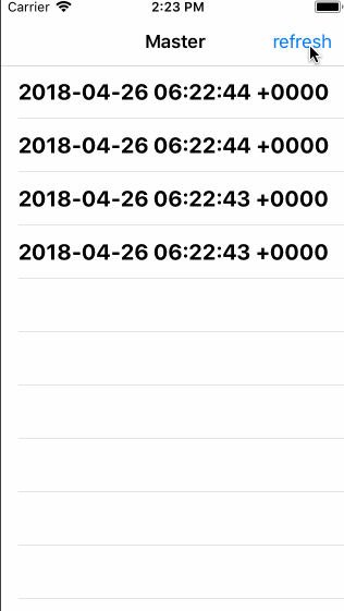 現(xiàn)在在下拉刷新之后,Cell內(nèi)部的視圖會(huì)有移動(dòng),類似的效果如下(為了方便展示,用按鈕點(diǎn)擊取代下拉刷新的操作):