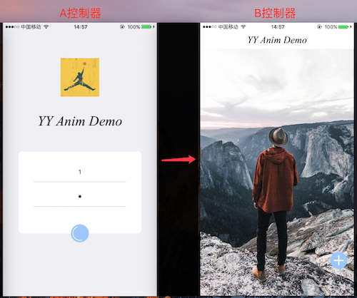 的確,A和B是兩個獨立的頁面,它們跳轉過程需要動畫的效果時,需要另外一個呈現于屏幕上的載體(或者稱頁面)來裝那些做動畫的控件,然后在動畫完成、轉場結束時,把這個載體移除掉,宣告轉場結束,這個時候把真正的B的頁面展示出來。