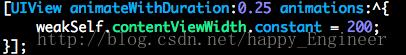 今天在做項目的時候,項目使用的是xib做的,頁面中需要有個動畫效果,使用UIView動畫如下圖: