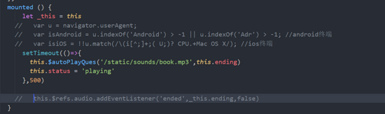 (關于為什么用document.getElementById , 其實本來是準備用$refs的 , 但是不知為何在app.vue中無法獲取 , 控制臺打印的$ref能看到有audio 了, 但是不可讀)