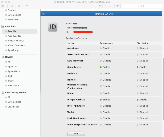 點擊continue - 點擊submit - 點擊done,申請“App IDs”完成,點擊 All IDs可查看申請的ID,點擊該ID