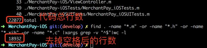 find . -name "*.m" -or -name "*.h" -or -name "*.xib" -or -name "*.c" |xargs grep -v "^$"|wc -l