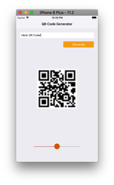 - (IBAction)clickButton:(id)sender{ if (self.qrcodeImage == nil) { if ([self.textField.text isEqualToString:@""]) { return; } [self generateQRCodeImage]; [self.textField resignFirstResponder]; [self.button setTitle:@"Clear" forState:UIControlStateNormal]; } else { [self clearQRCodeImage]; [self.button setTitle:@"Generate" forState:UIControlStateNormal]; } self.textField.enabled = !self.textField.enabled; self.slider.hidden = !self.slider.hidden;}最后,考慮到程序啟動(dòng)時(shí)滑動(dòng)條不應(yīng)該顯示(滑動(dòng)條只在生成二維碼時(shí)出現(xiàn)),還需要在 viewDidLoad 方法中設(shè)置其 hidden 屬性: