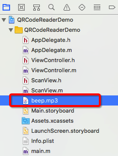 另外,為了使我們的應用更逼真,可以在掃描到二維碼信息時讓它播放聲音。這首先需要在項目中添加一個音頻文件: