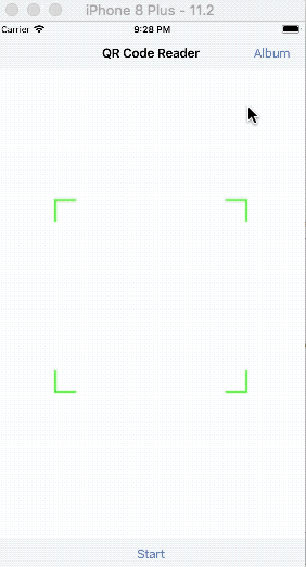 - (void)imagePickerController:(UIImagePickerController *)picker didFinishPickingMediaWithInfo:(NSDictionary<NSString *,id> *)info{ [picker dismissViewControllerAnimated:YES completion:nil]; UIImage *selectedImage = [info objectForKey:UIImagePickerControllerEditedImage]; CIImage *ciImage = [[CIImage alloc] initWithImage:selectedImage]; CIDetector *detector = [CIDetector detectorOfType:CIDetectorTypeQRCode context:nil options:@{CIDetectorAccuracy:CIDetectorAccuracyLow}]; NSArray *features = [detector featuresInImage:ciImage]; if (features.count > 0) { CIQRCodeFeature *feature = features.firstObject; NSString *message = feature.messageString; // display message [self displayMessage:message]; // play sound if (self.audioPlayer) { [self.audioPlayer play]; } }}現在可以運行試下從相冊選取二維碼來讀取: