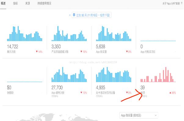 1. 通過對應的蘋果開發者賬號進入iTunes connect,進入App分析,查看對應的App信息,如:App購買量,使用次數,展示次數等。