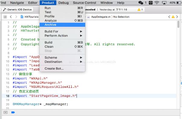5. 首先,打開Xcode -- Product -- Archive 去下載對應的奔潰日志。