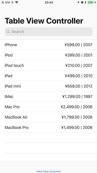 if (@available(iOS 11.0, *)) { UISearchController *searchController = [[UISearchController alloc]initWithSearchResultsController:nil]; self.navigationItem.searchController = searchController;} else { // Fallback on earlier versions}關于 Search Controller 的使用在此不再贅述??蓞⒖脊俜絊ample Code Table Search with UISearchController