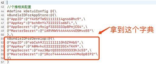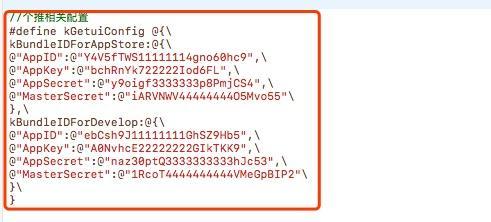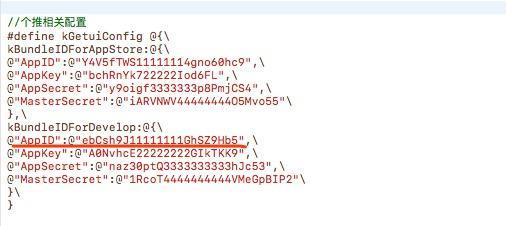 kGetuiConfig[kBundleID][@"AppID"]--> ebCsh9J11111111GhSZ9Hb5