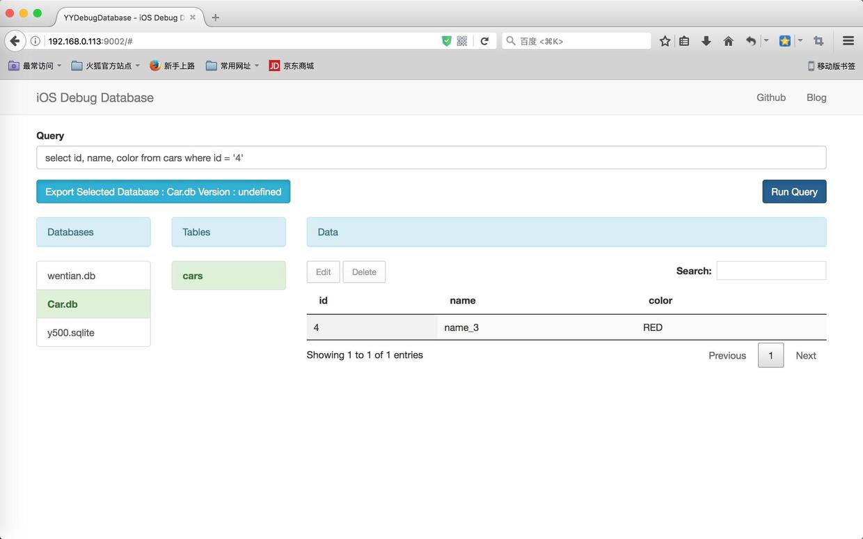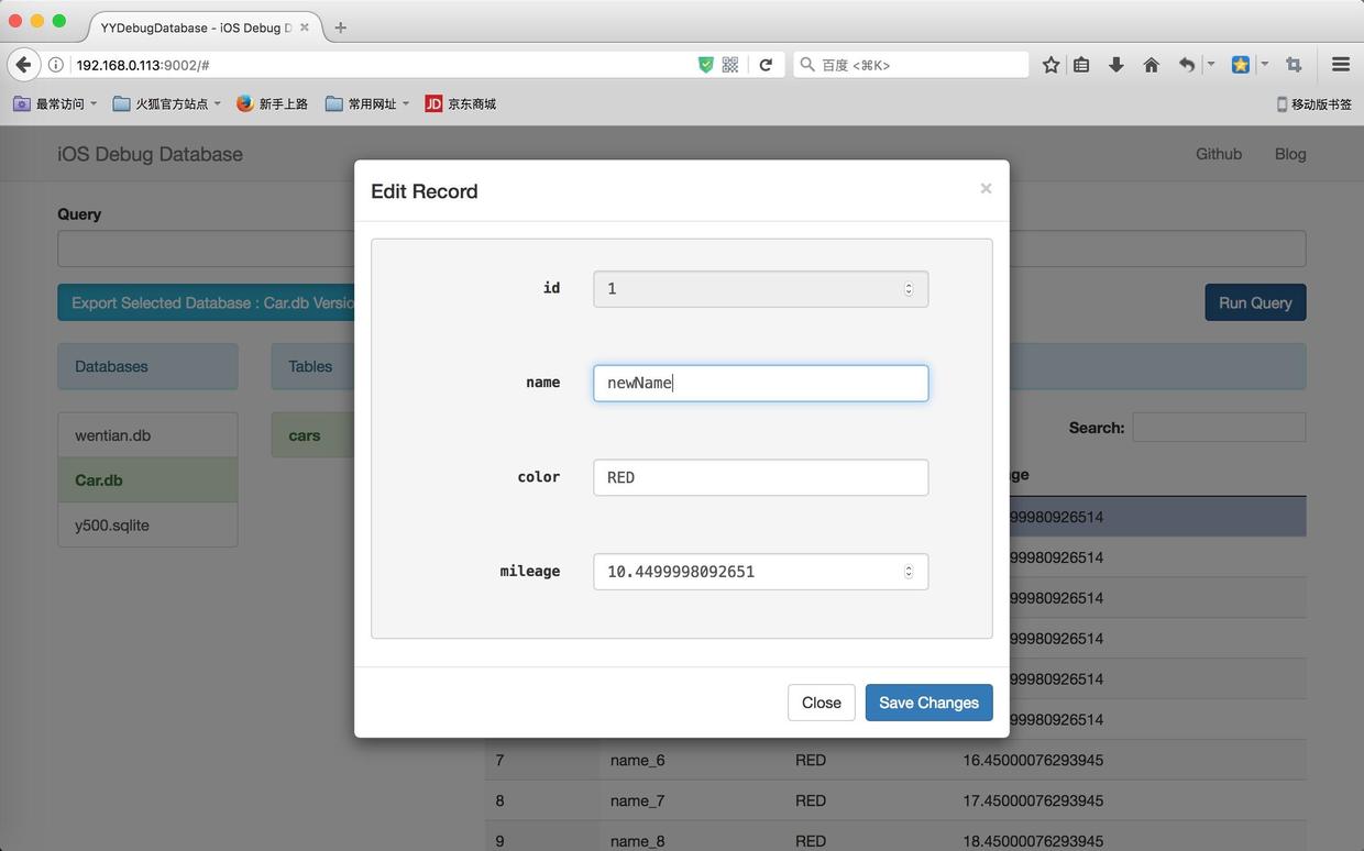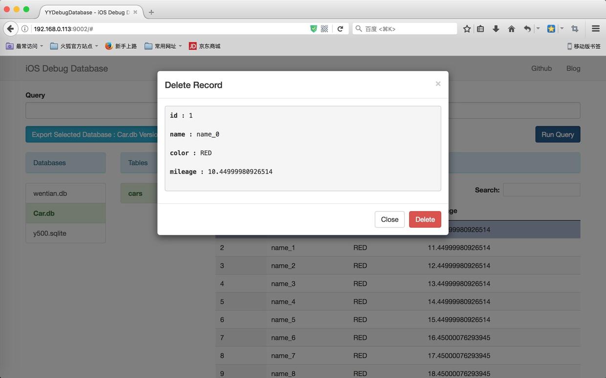 pod 'YYDebugDatabase'run $ pod install[[DebugDatabaseManager shared] startServerOnPort:9002];然后就可以在瀏覽器里方便的增刪改查了。