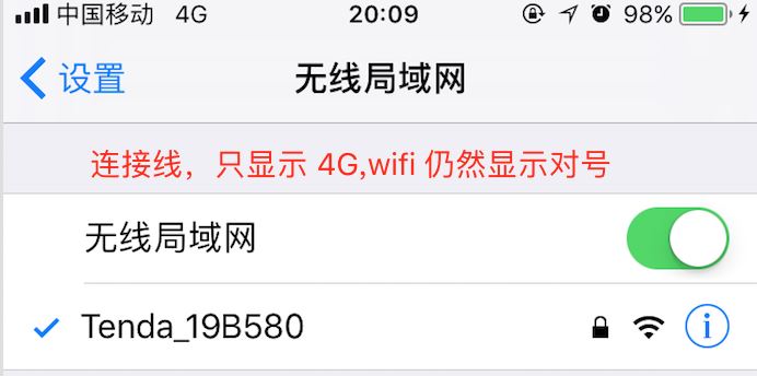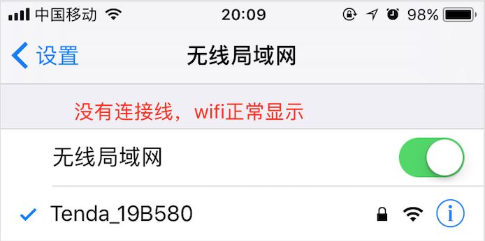 另外筆者發(fā)現(xiàn)在iPhone連接wifi之后,如果插上線,狀態(tài)欄wifi無(wú)法顯示,顯示的是移動(dòng)網(wǎng)絡(luò) 4G,拔掉之后才會(huì)顯示wifi,暫時(shí)不知道是bug,還是就是這樣
