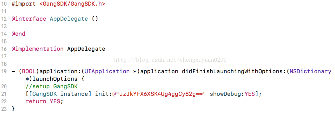 [[GangSDK instance] init:申請的key showDebug:是否打印日志];